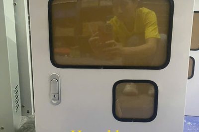 Cánh ngoài được khoét ô lớn, lắp Mica dày chịu lực, có gioăng cao su êm ái. Cánh trong được thiết kế để lắp đặt mặt hiển thị, giúp tách biệt khu vực vận hành và khu vực điện áp.